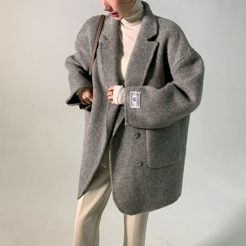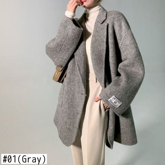 ウールコートブレザー女性 V ネックルーズ秋冬ミッドレングスオフィスレディシックなオールマッチ オータム 秋物 ウィンター 冬物 Vネック 会社 学校 通勤や通学にも got88162003966