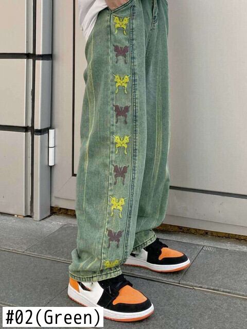 Gothiscyn ジーンズグリーンメンズワイドレッグパンツデニムだぶだぶのズボンズボンストリートストレートヒップホップゴシックトレンディ ワイドパンツ got73141881850