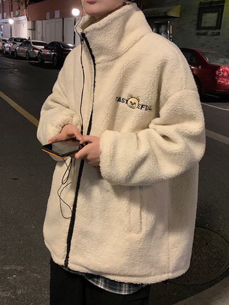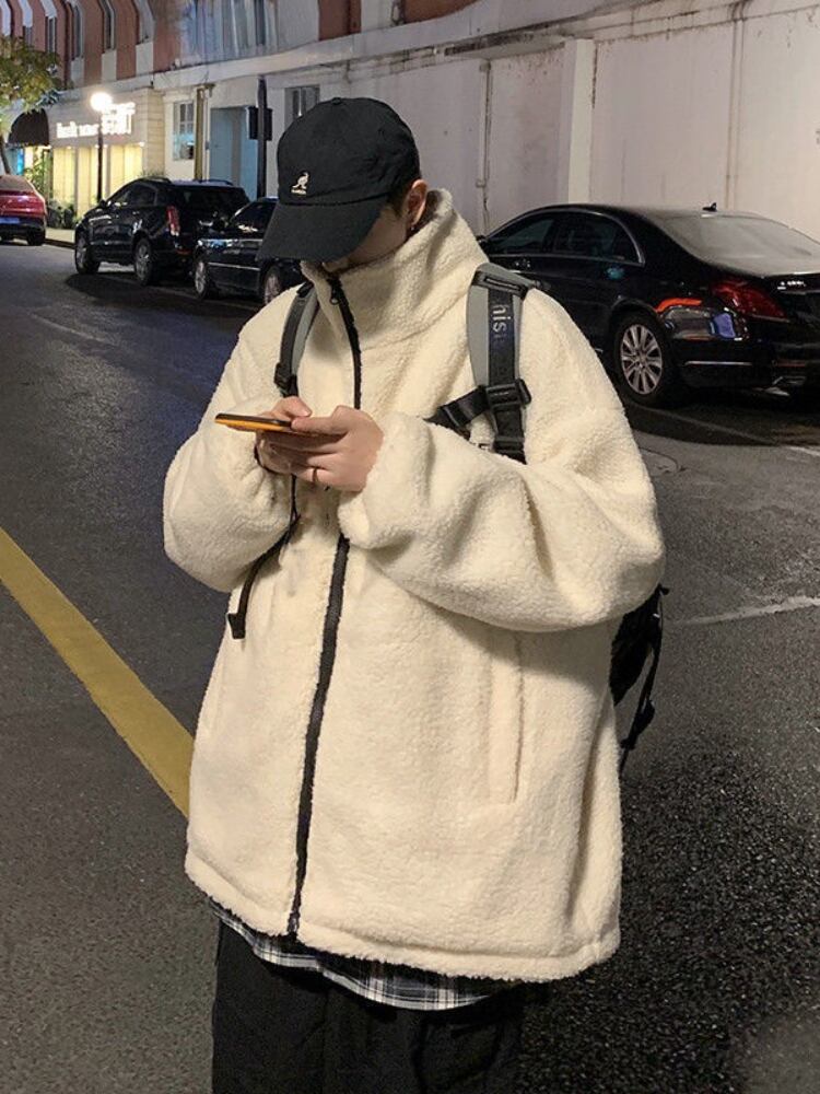 Gothiscyn ラムウールジャケット男性ストリート冬のジャケットジップアップ上着コートターンダウンネックメンズトレンド ウィンター 冬物 got28828922864