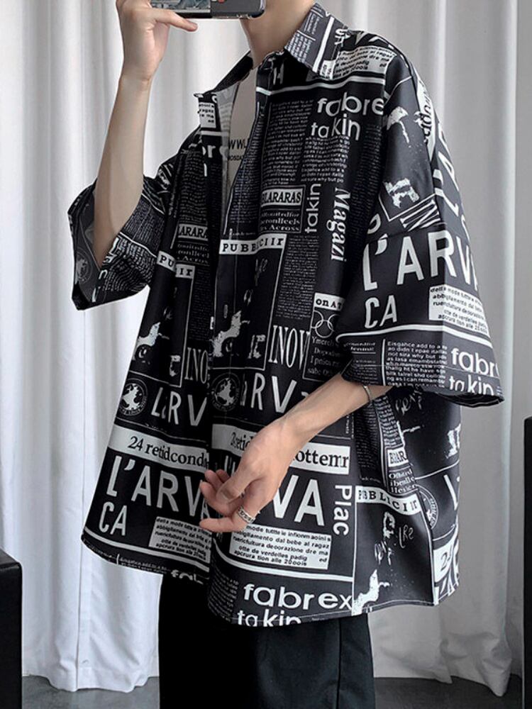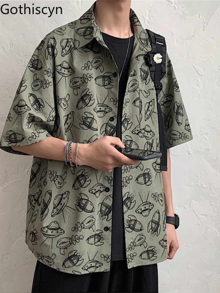 Gothiscyn 男性シャツ半袖夏特大シャツストリートボタンアップシャツブラウス流行のヒップホップシャツ ショート ハーフスリーブ サマー 夏物 got93057250551