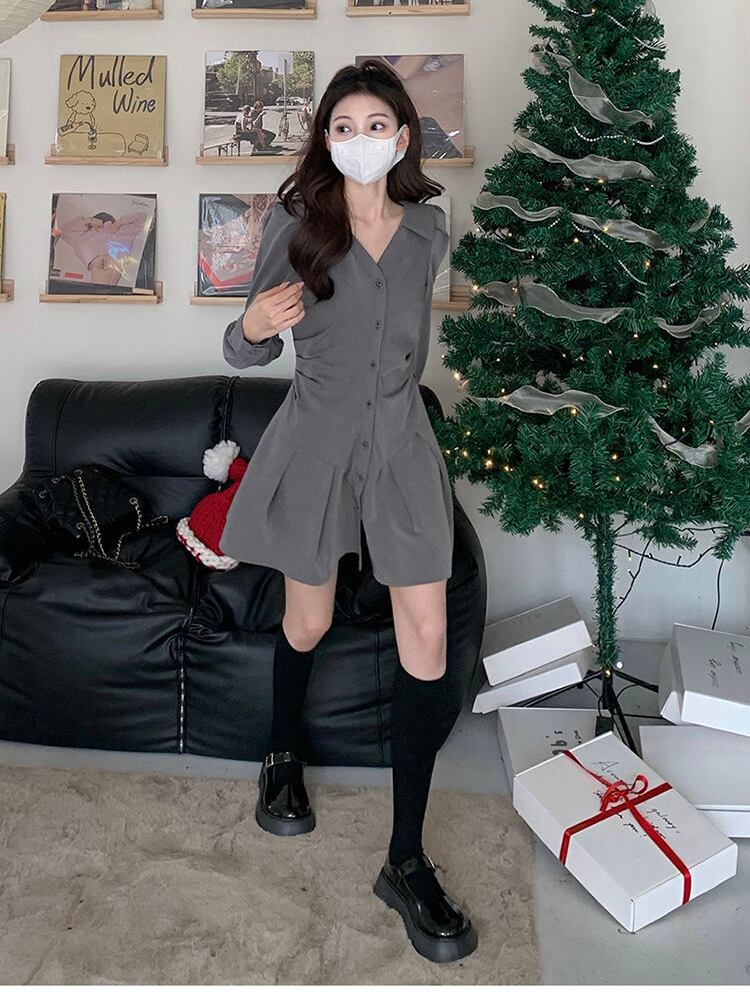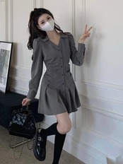 セクシーなシャツスカートグレードレススキニープリーツスカートシースオフィスレディロングスリーブ原宿ドレスゴシック服 長袖 かわいい 会社 学校 通勤や通学にも got65305458788