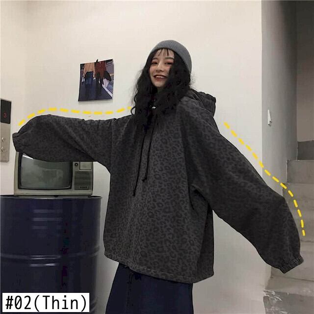 セーター春原宿 BF 風ダーク レトロ ヒョウ柄ルーズ バット スリーブ フード付きトップの新しいトレンディなバージョン かわいい スプリング 春物 got21280521869