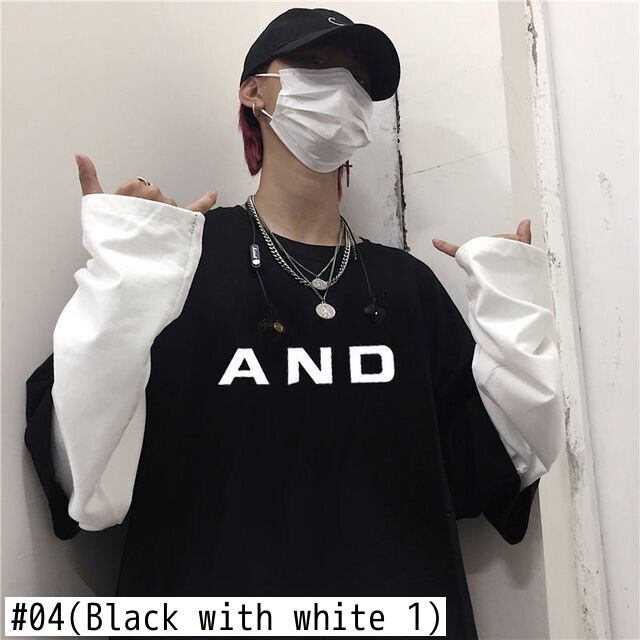 Tシャツ 紳士服 秋風 ゆったり ストライプ ステッチ フェイクツーピース 学生 長袖 ボトムス シャツ ロング オータム 秋物 got95310442343