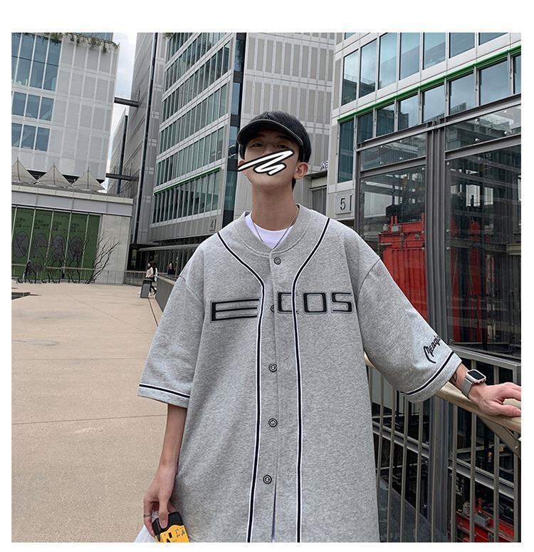 アメリカのレトロなレタープリントシングルブレスト V ネック男性シャツ女性野球半袖シャツ夏ボタントップ ショート ハーフスリーブ サマー 夏物 Vネック got49956797660