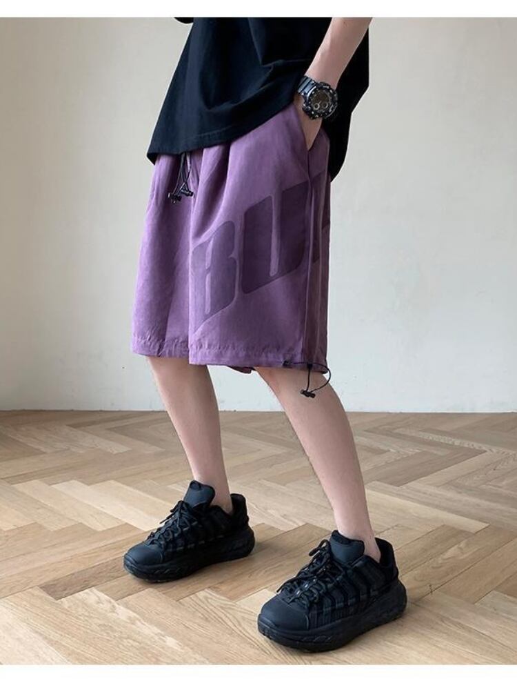 バスケットボールショーツ特大男 ショート ブラック ストリート サマー 夏物 ブルマー ワイドレッグ ワイドパンツ パープル got83225429912