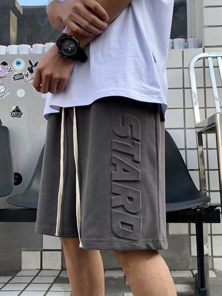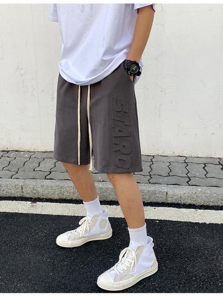 男性パンツバスケットボールショーツ夏ジムショート弾性ウエストワイド脚だぶだぶパンツ文字プリントヒップホップパンク男性ボトムス エラスティック 伸縮 サマー 夏物 ブルマー ワイドレッグ ワイドパンツ got61124102476