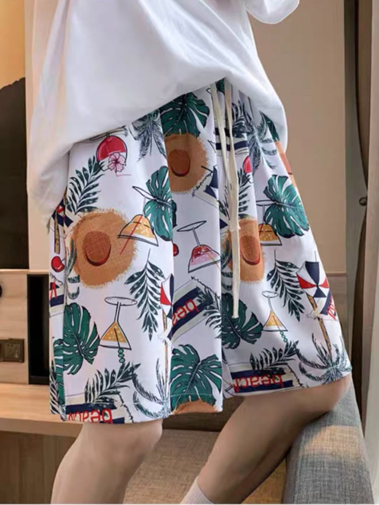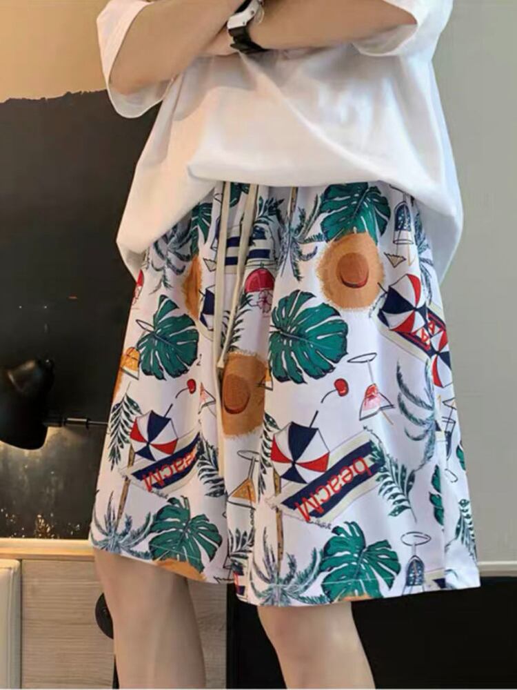 男性ショーツ 5 点ワイドレッグパンツ女性ルース夏アウタービーチスタイルアメリカ原宿ボトムス弾性ウエスト エラスティック 伸縮 かわいい サマー 夏物 ブルマー ワイドパンツ got63167801197