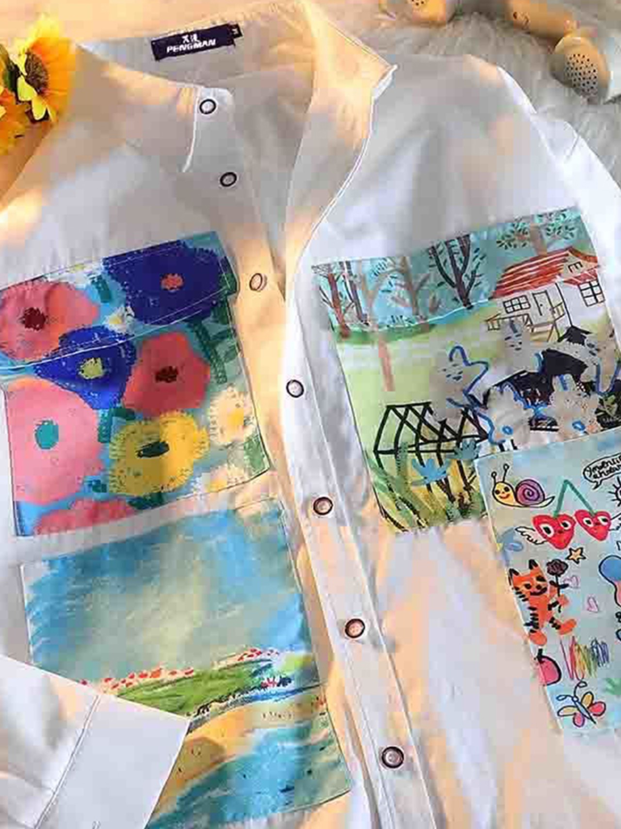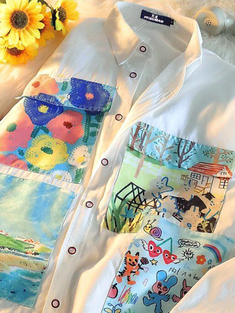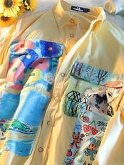 シャツ絵画女性男性夏長袖黄色シャツユニセックスブラウスハワイ十代の少女 ロング サマー 夏物 got42847070249