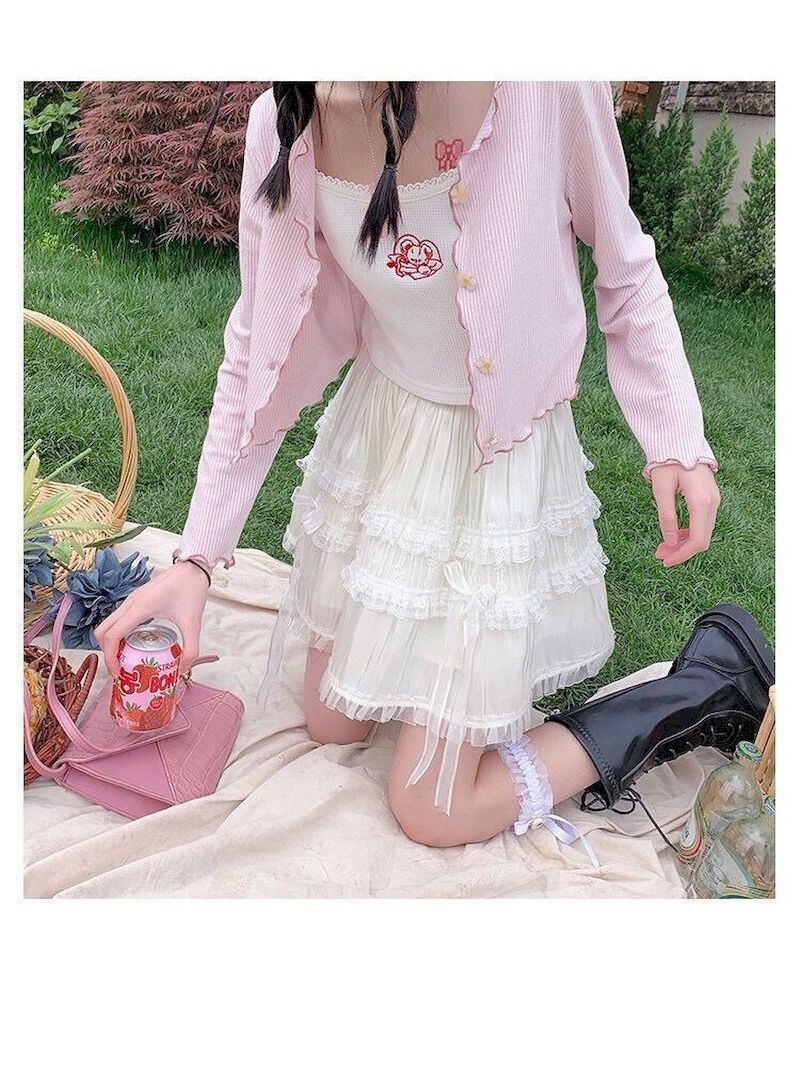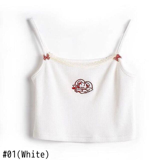 タンクトップ サマーベスト ese ソフト かわいい kawaii レース プレッピー スタイル ショート クロップトップ コルセット ボトム 下着 ブラジャー 大人ガーリー スウィート キュート カジュアル 夏物 got22686967759
