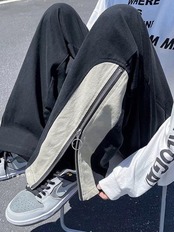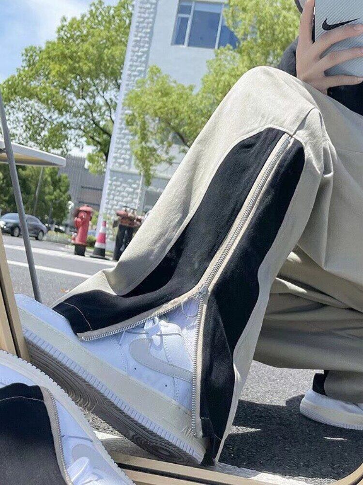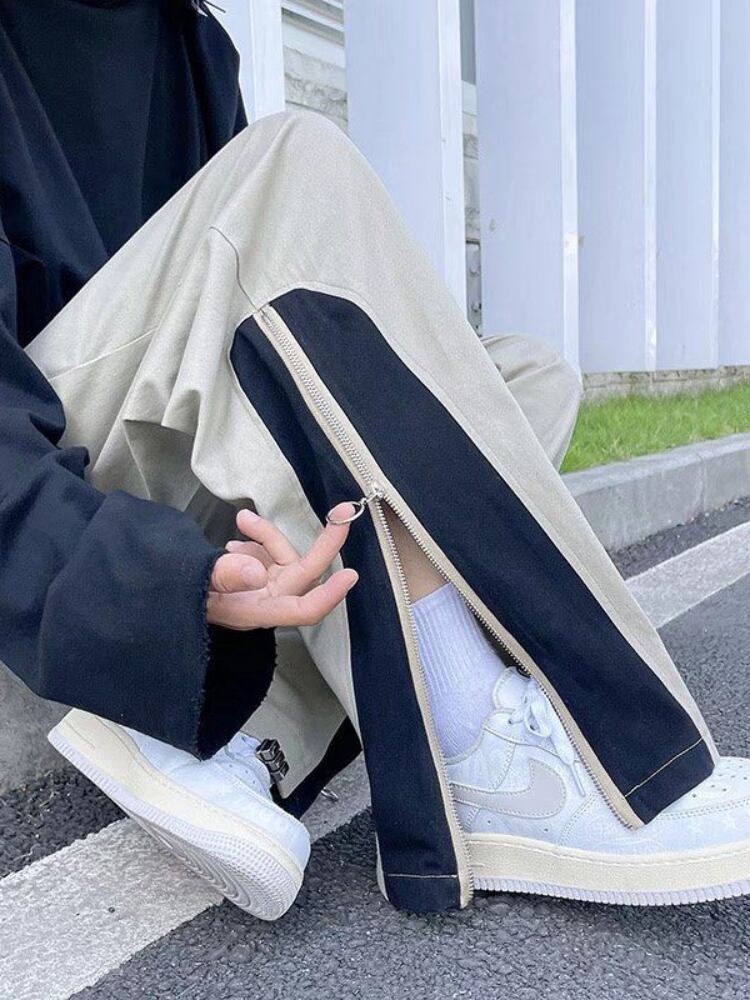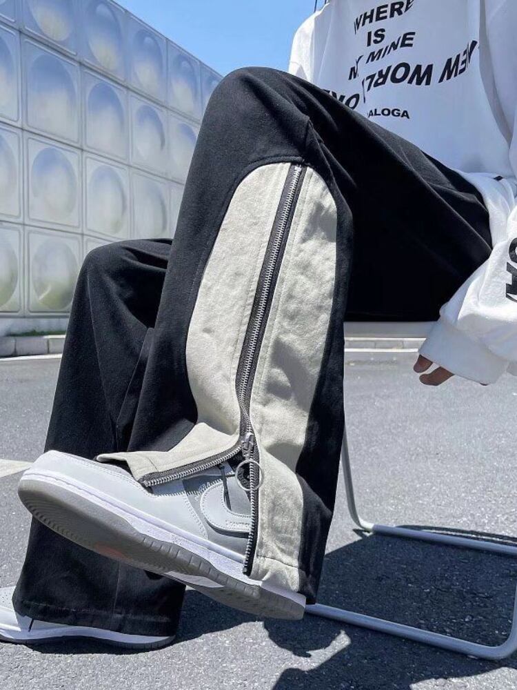 男性パンツワイドレッグパンツジップアップステッチストレートズボンだぶだぶゴシックパンクカーゴパンツ原宿男性ボトムストリート かわいい ワイドパンツ got25153603674