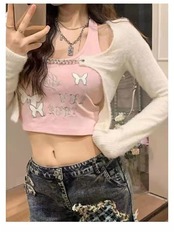クロップトップ ピンク スキニー セクシー タンク キャミソール 夏服 ノースリーブ Y2k ビスチェ トップス レディース サマー 夏物 got32082265619