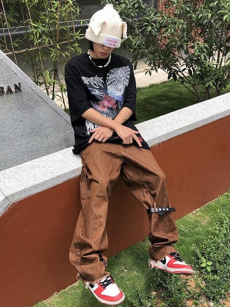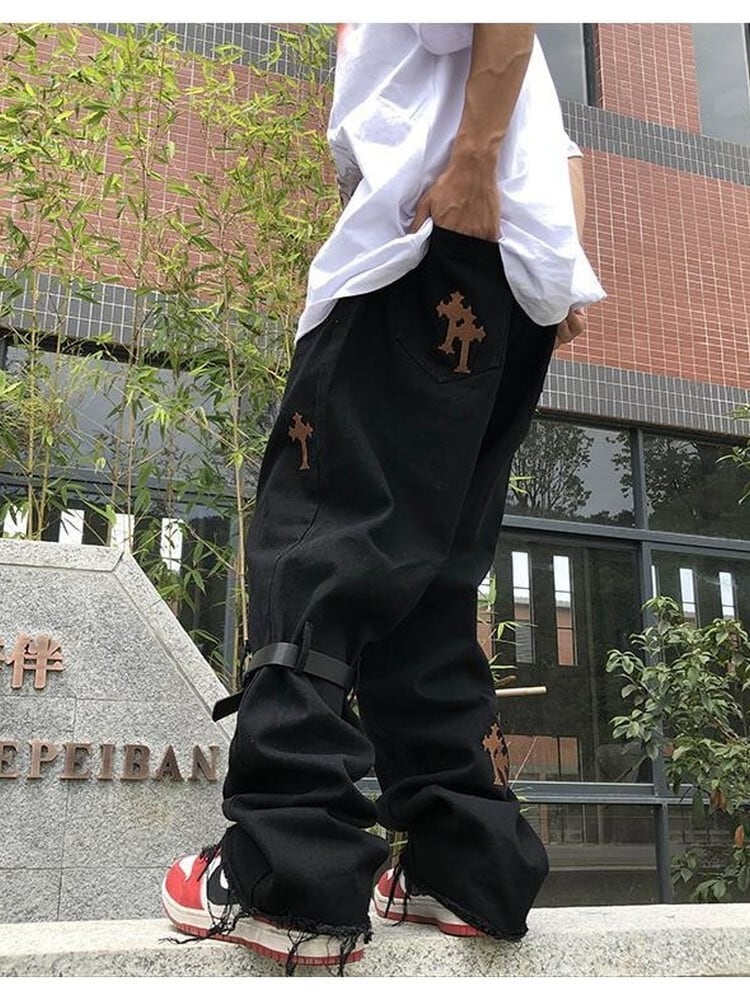 男性ジーンズカーゴパンツワイド脚パンツヒップホップ春秋 ese ストリート男性ボトムスストレートズボンゴスパンク服 スプリング 春物 オータム 秋物 ワイドレッグ ワイドパンツ got63920301038