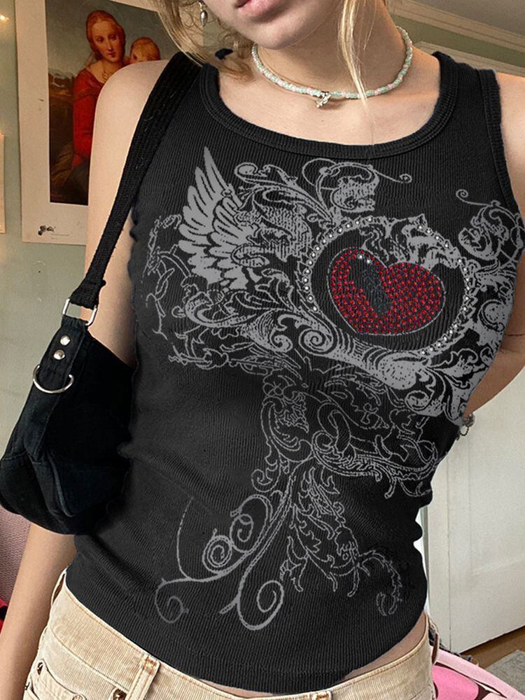 y2k トップス キャミソール プリント クロップ トップ ニット ダイヤモンド グランジ タンクトップ フェアリーコア ノースリーブ スウェット かわいい ミニ ベスト レトロ 大人ガーリー スウィート キュート カジュアル got93283364080