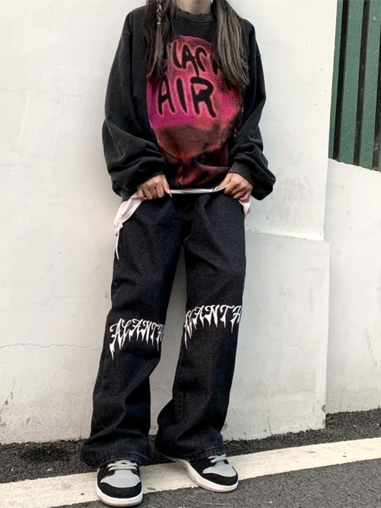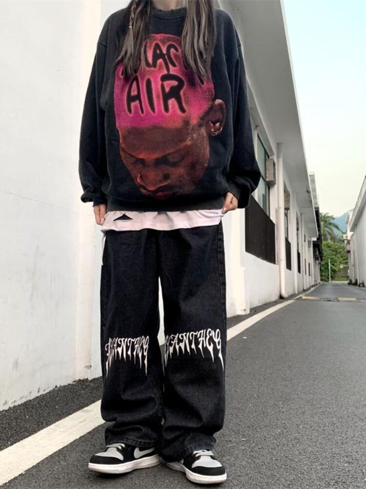 ゴシックパンクジーンズワイドレッグパンツだぶだぶストレートズボンメンズカーゴパンツ女性ヒップホップストリートボトムス ワイドパンツ got85582274053