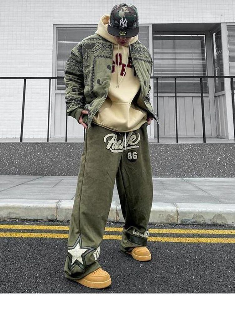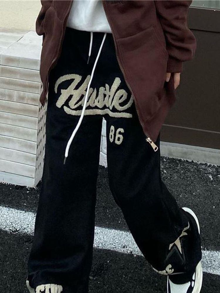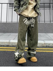 ワイドレッグズボン黒パンツ男性だぶだぶの手紙 Emboridery パンツメンズ ese ストリートブルーゴシック ブラック ワイドパンツ got40308875997