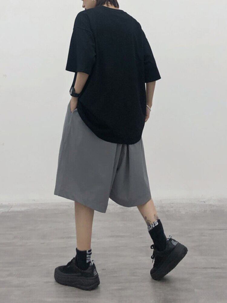 バスケットボールショーツユニセックス黒ワイドレッグパンツストリートパンツワークアウトショート夏弾性ウエストだぶだぶショーツ ブラック エラスティック 伸縮 サマー 夏物 ブルマー ワイドパンツ got22325159474