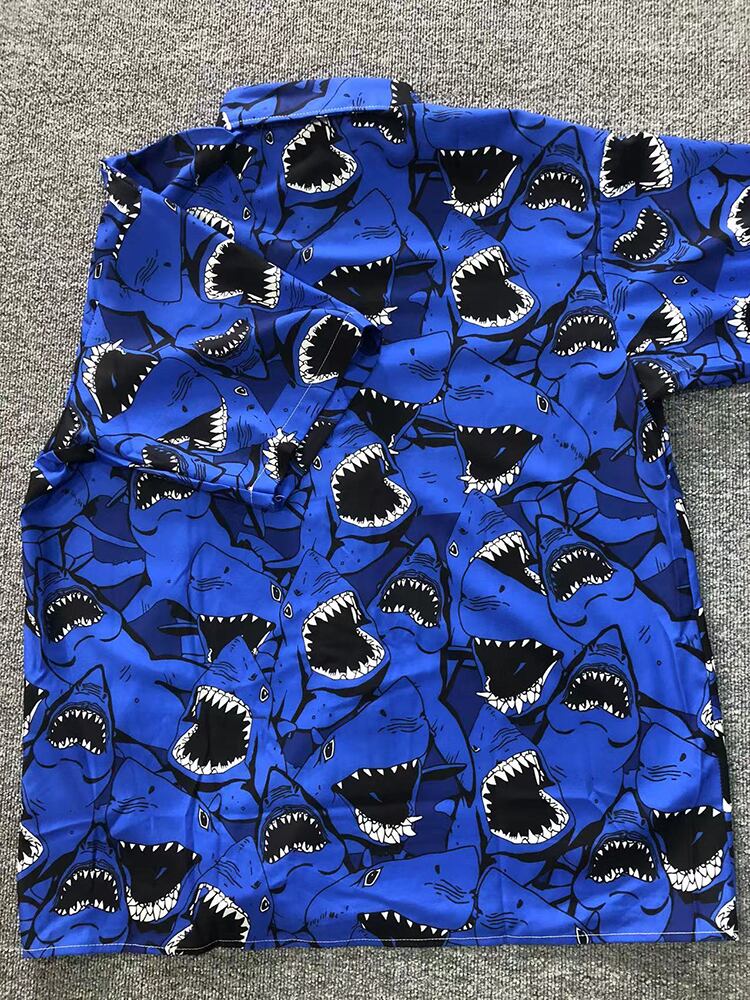 夏特大シャツ女性男性サメprintt-sleevedシャツレトロ香港スタイルブラウスビーチ服 サマー 夏物 got84605077230
