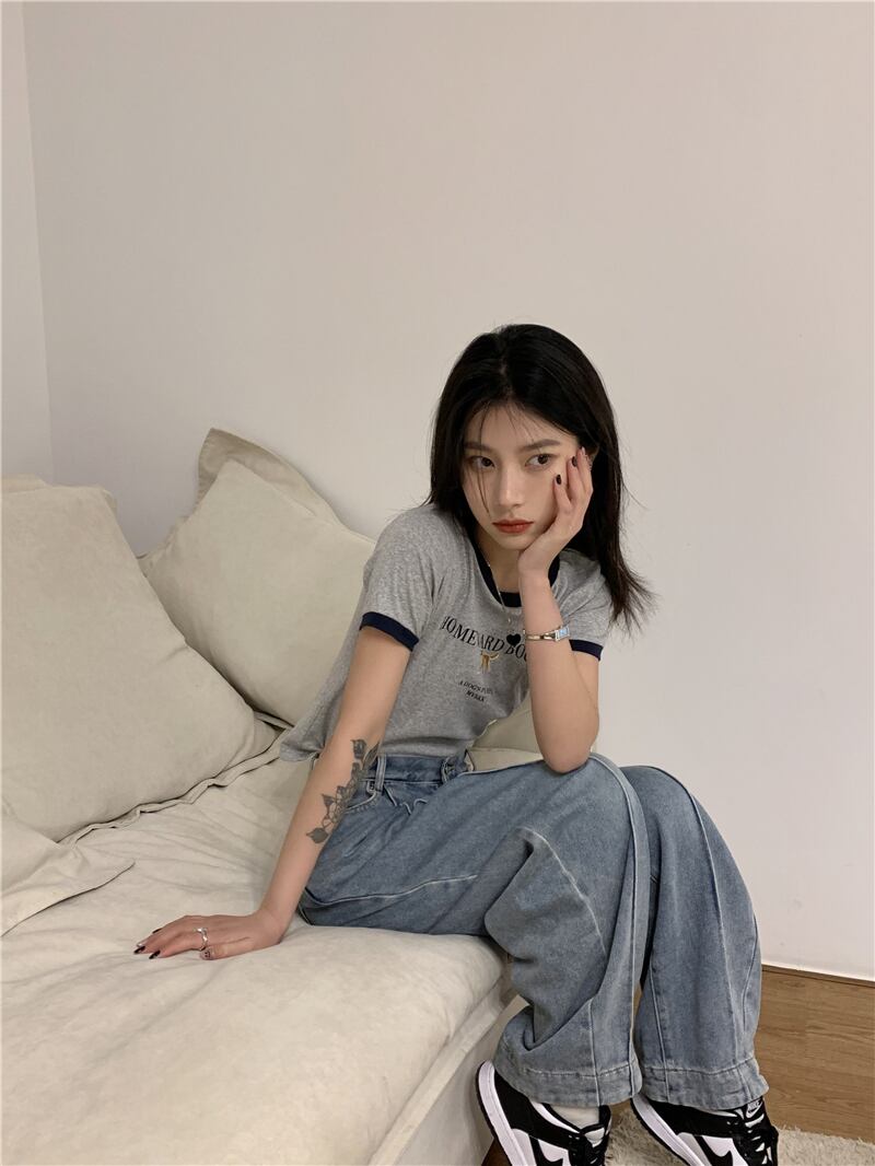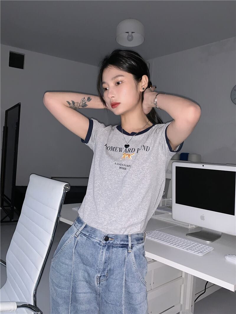 Gothiscyn 半袖 Tシャツ女性の夏のホットガールショートオールマッチ夏トップ O ネック子犬プリント原宿シャツ Y2k かわいい サマー 夏物 Oネック got38059877679