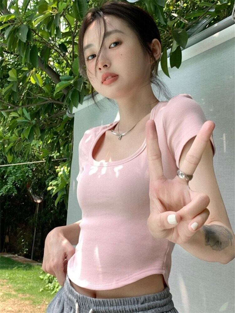 Gothiscyn 女性 Tシャツクロップトップピンク半袖 Tシャツストリート Y2k シャツ E ガール夏の女性原宿 ショート ハーフスリーブ かわいい サマー 夏物 got82988094405