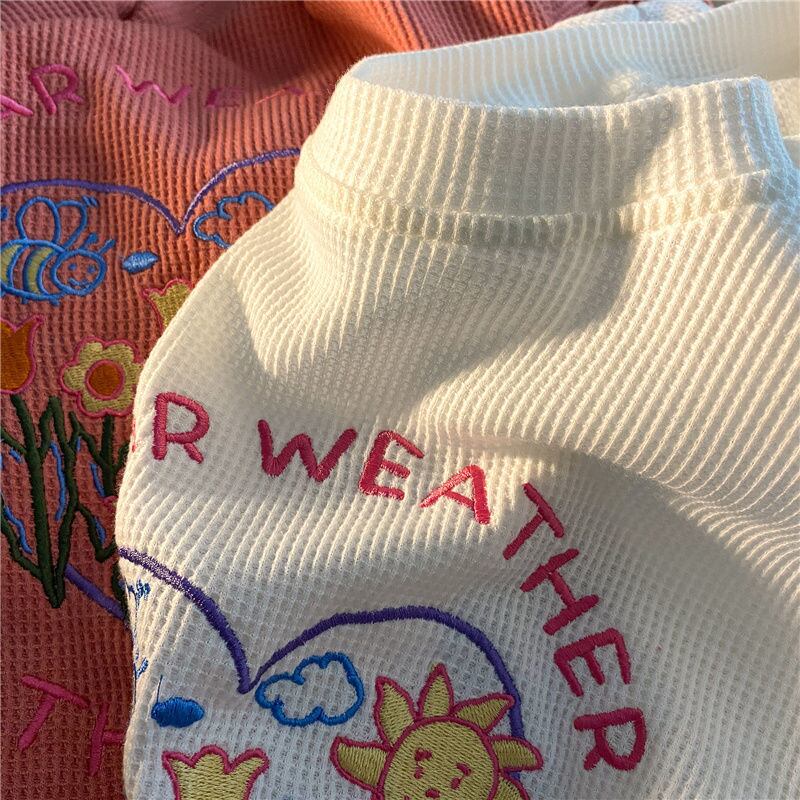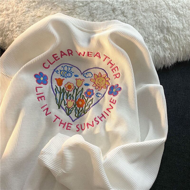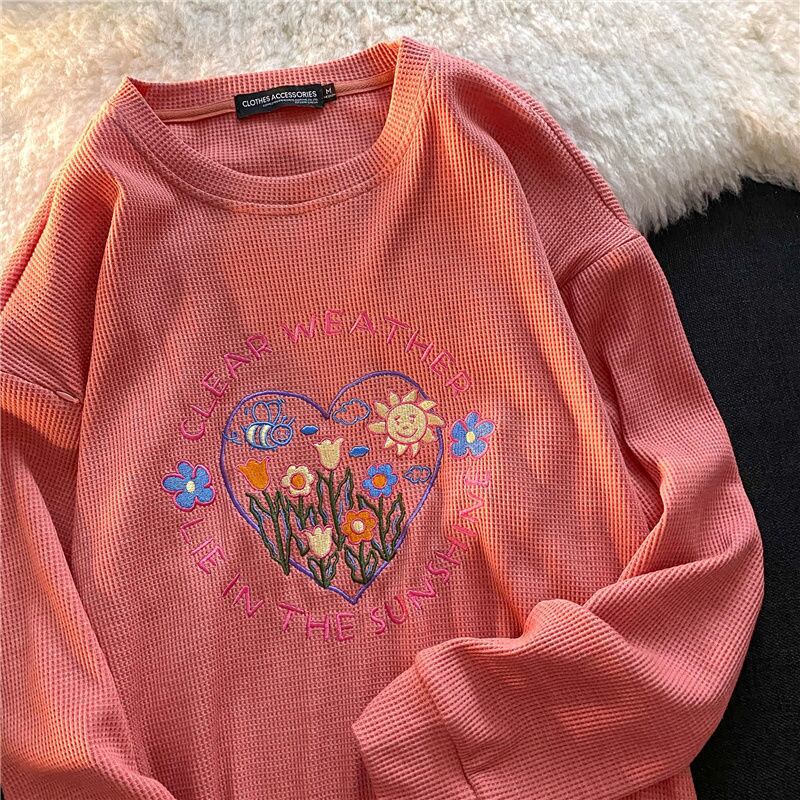 ワッフルパーカースウェット特大女性服刺繍 O ネック長袖グランジ美的トップスプルオーバー ロング シャツ Oネック got13136831800