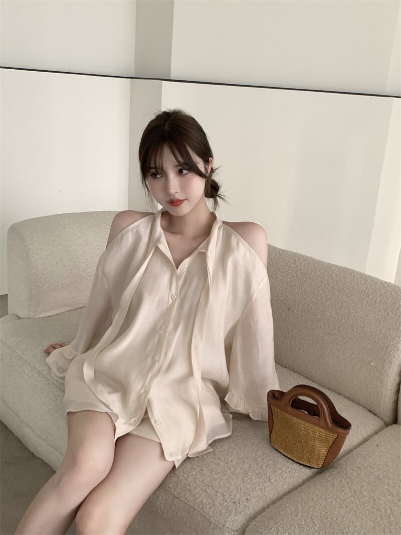 Gothiscyn レディース ブラウス オフショルダー シャツ トップス ショーツ 夏 フレンチスーツ 2点セット シンプル サマー 夏物 ブルマー got40033555918