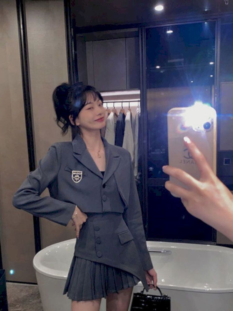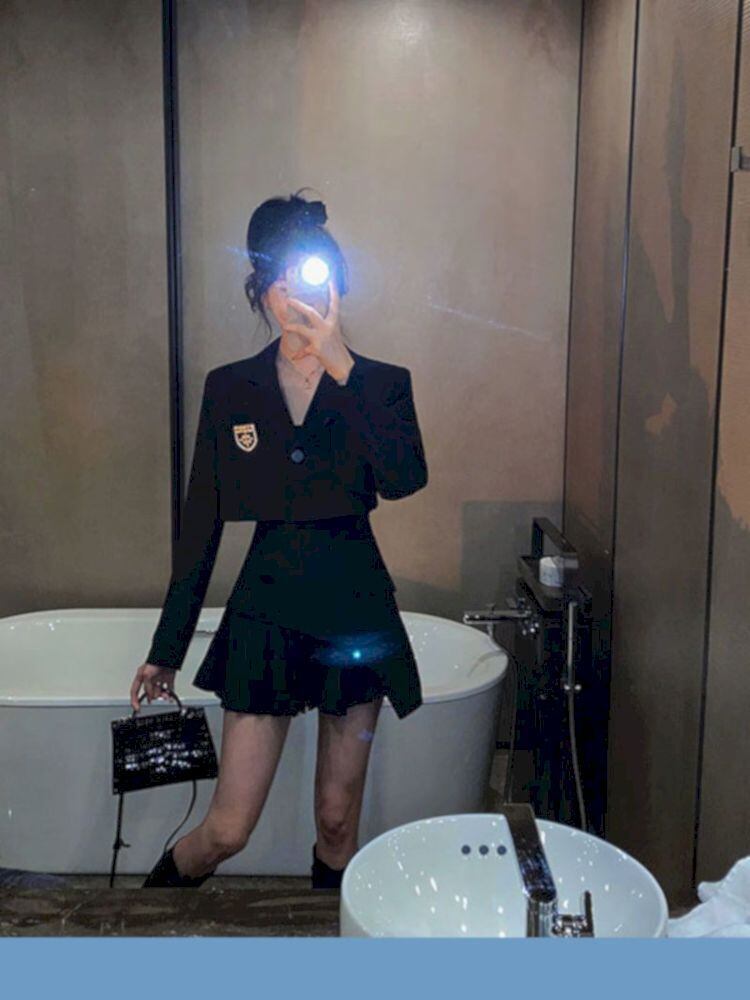 女性セットクロップブレザー + ミニスカート 2 個スーツオフィスレディスカートスーツ黒グレー無地女性服 ブラック ソリッドカラー 会社 学校 通勤や通学にも got2000943861