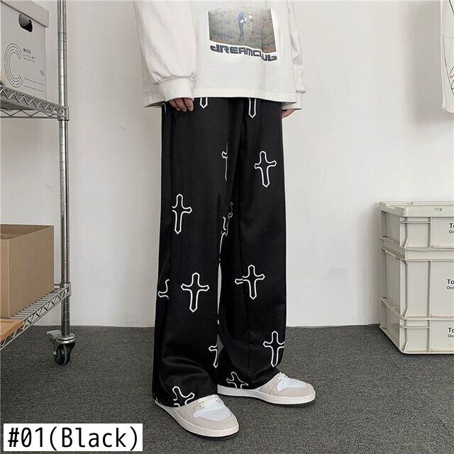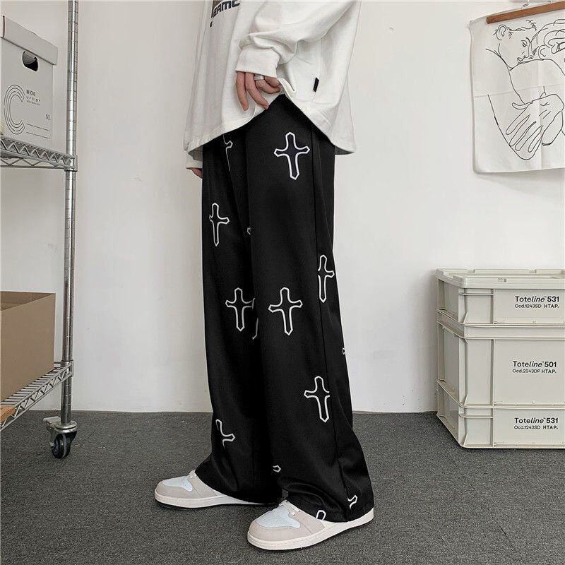 ハイストリート クロス プリント パンツ メンズ レディース ルーズ オールマッチ グランジ ストレート ロング パンツ ヒップホップ テックウェア カジュアル スポーツ パンツ got344106489