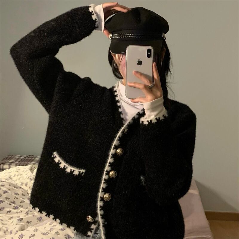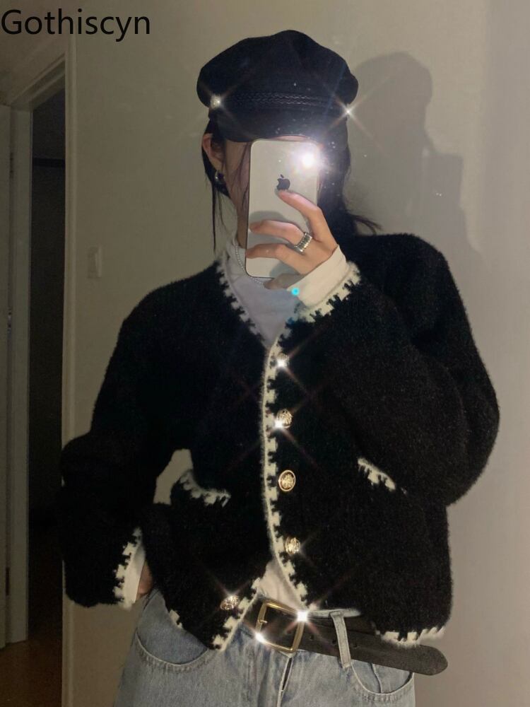 Gothiscyn 秋冬ニットセーターセータージャケットゆったり V ネックコントラストカラー肥厚上着コートジャケット オータム 秋物 ウィンター 冬物 Vネック got35229526843