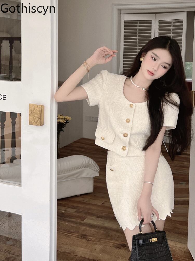 Gothiscyn ジャケット スカート スーツ レディース ショートトップ 半袖 Oネック スカート 夏 2点セット オフィスレディ シックな衣装 ハーフスリーブ サマー 夏物 会社 学校 通勤や通学にも got79607763478