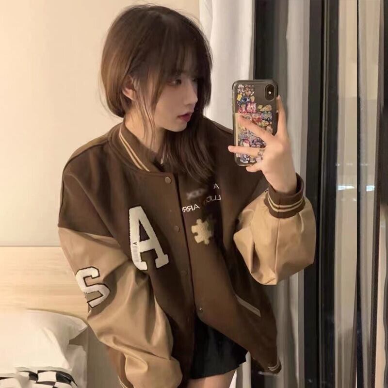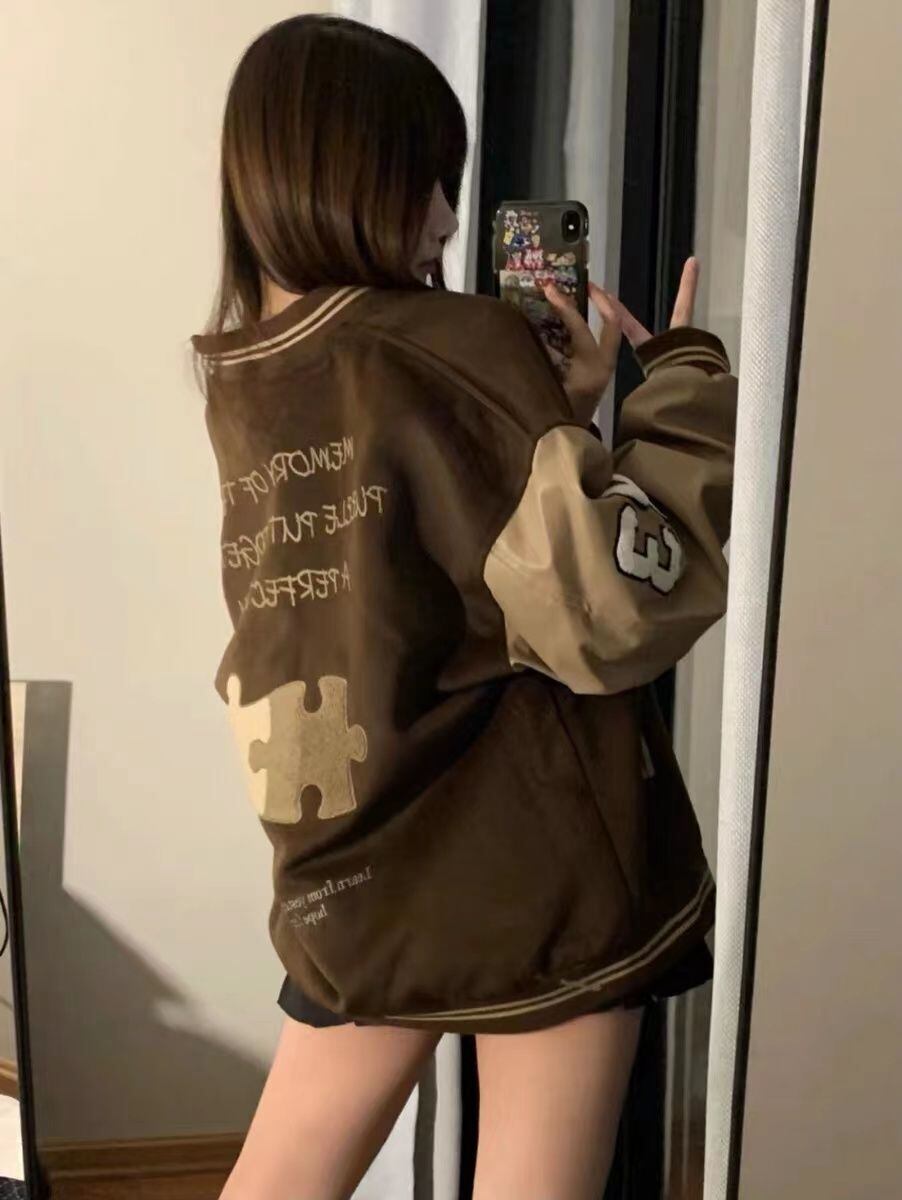 野球ジャケット女性ボンバージャケット PU レザースリーブステッチストリート春/秋のトップ服上着コート スプリング 春物 オータム 秋物 got97990935036