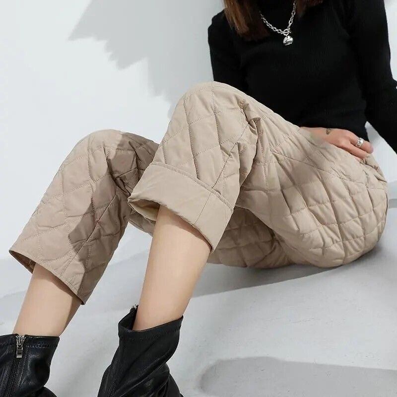 冬のパンツの女性暖かいパッド入りキルティング固体ズボンワイド脚パンツ足首までの長さのストリート女性レディボトム ウィンター 冬物 ワイドレッグ ワイドパンツ ソリッドカラー got33360610384