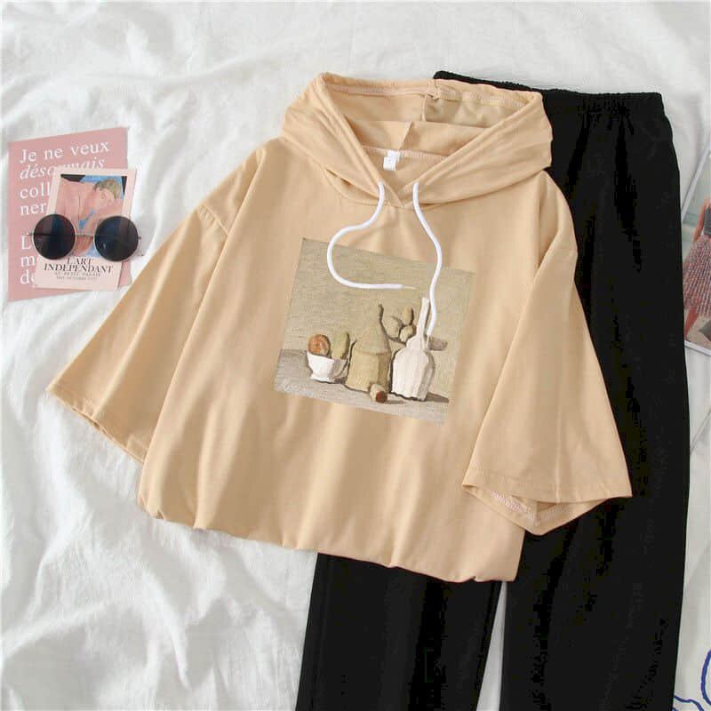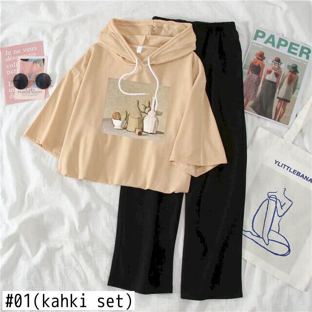 女性のトラックスーツの女性のズボンスーツ原宿夏半袖フード付きスウェットシャツ緩いワイドレッグパンツラウンジ原宿 かわいい サマー 夏物 got83000866616
