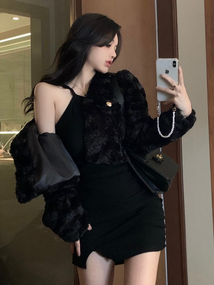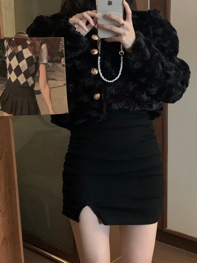 ツーピースセットレディース衣装レトロスーツ小さな香り h コートセクシーなドレス固体梨花服秋/冬セット オータム 秋物 ウィンター 冬物 ソリッドカラー got3954542386