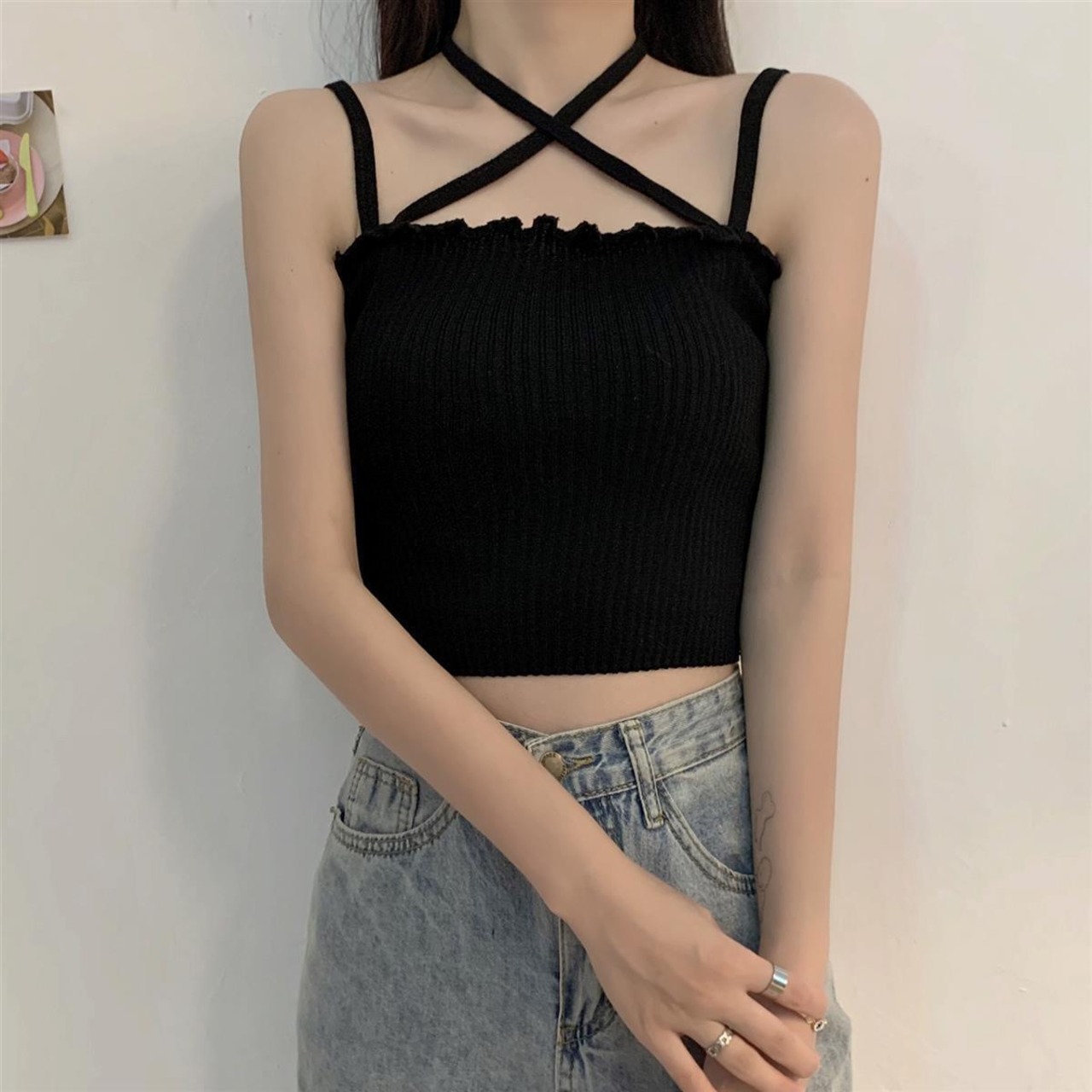 タンクトップ 女性 Y2k ホワイト クロップ セクシー コルセット ニット 無地 綿 夏 スキニー 女性 バックレス コットン サマー 夏物 ソリッドカラー got51890541121