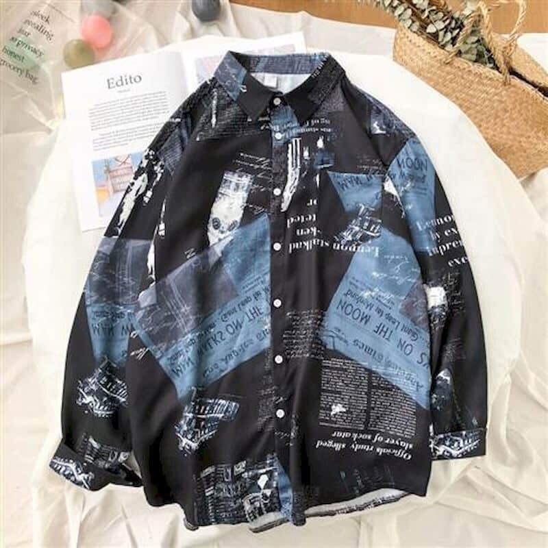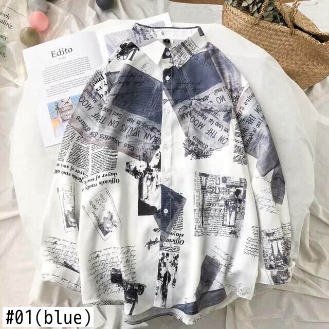 シャツ男性ブラウストレンド春/秋の人格香港若い学生カップル幾何学文字プリント長袖シャツ ロング スプリング 春物 オータム 秋物 got82262032437