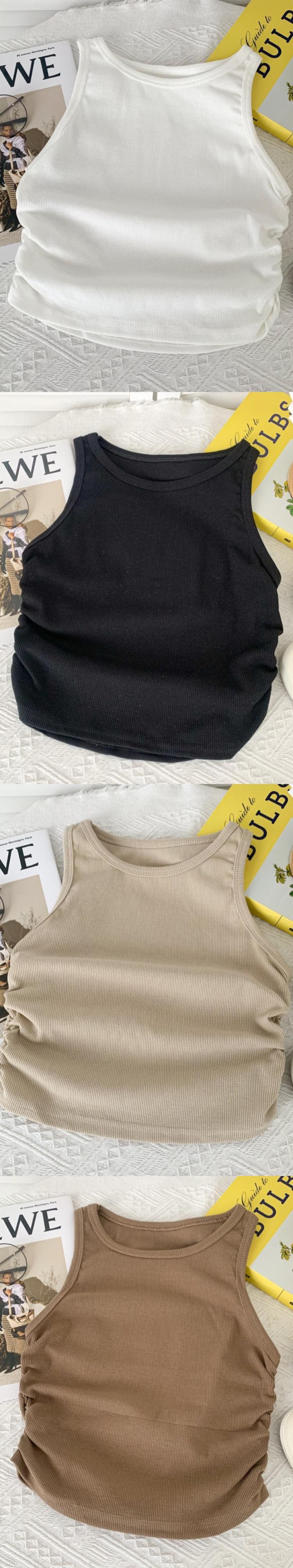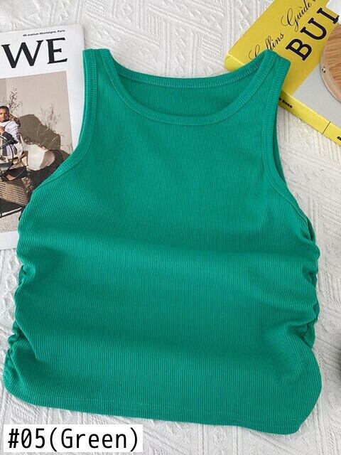 タンクトップキャミソール無地ノースリーブ Tシャツサイドプリーツ Y2k クロップ夏セクシーな女性コルセットトップススキニーキャミビスチェ サマー 夏物 ソリッドカラー got2222055192