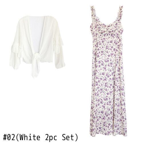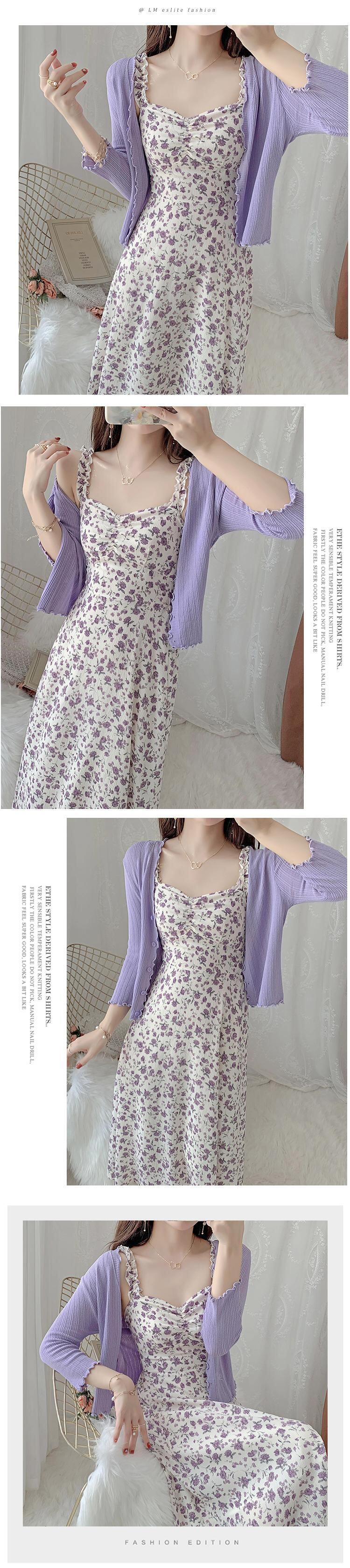 太郎紫ドレスセット花柄サスペンダーニットセーターカーディガンツーピーススーツ優しい淑女気質ロングドレス パープル got13846937365