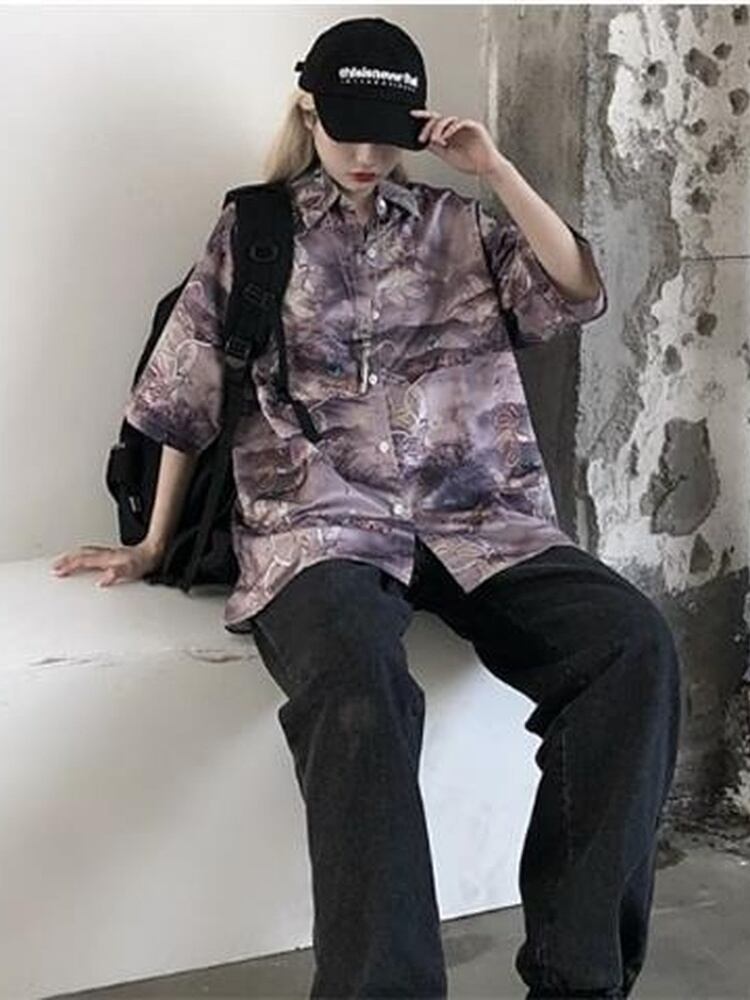 女性シャツブラウス特大風景画ストリートボタンアップシャツ夏メンズトップスゴシックパンク サマー 夏物 got51297247428