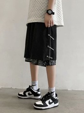 男性ショーツバスケットボール夏男性ショート黒ワイドレッグパンツパッチワークストリートボトムス弾性ウエストショーツゴスパンク ブラック エラスティック 伸縮 サマー 夏物 ブルマー ワイドパンツ got98203514058