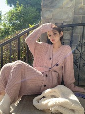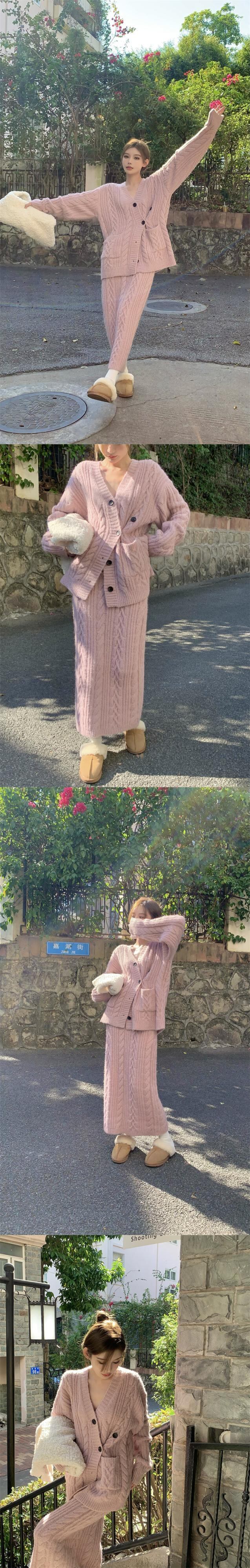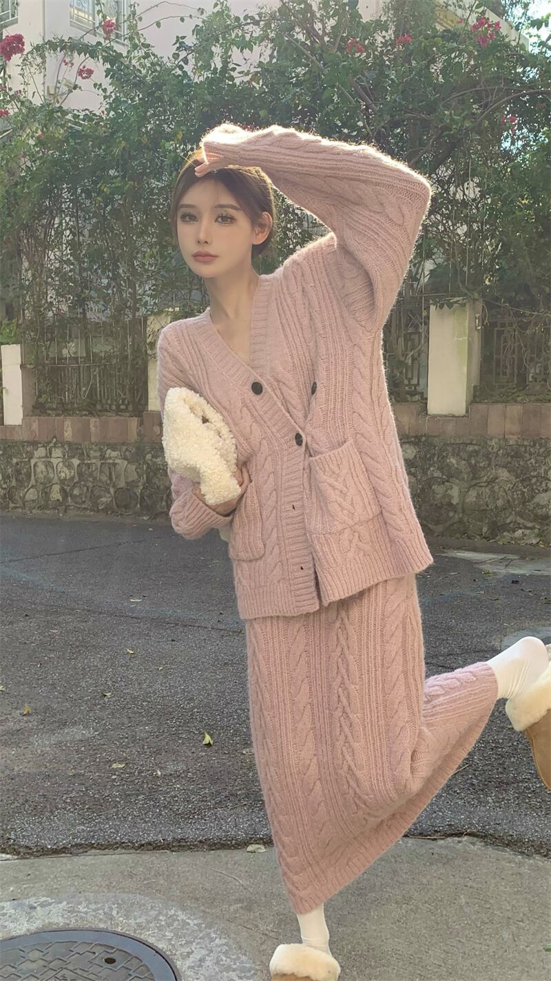 ジェントルスーツ ピンク 厚手ニット ゆったり 長袖 カーディガン ミッドカーフ スカート 2点セット 洋服 ロング got11799443911