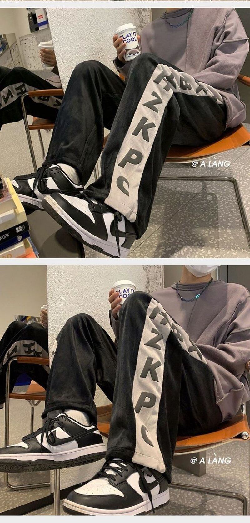 ストリート レトロ カジュアル パンツ メンズ レディース ルーズ 秋 トレンド ハンサム ワイドレッグ スポーツ パンツ ユニセックス レター ヒップホップ パンツ オータム 秋物 got44633536881