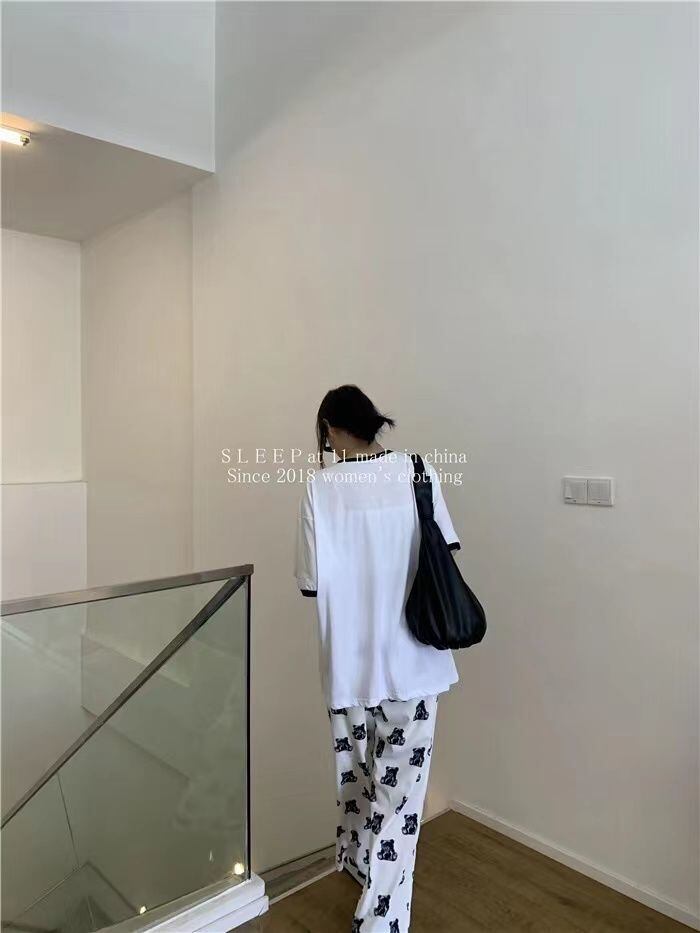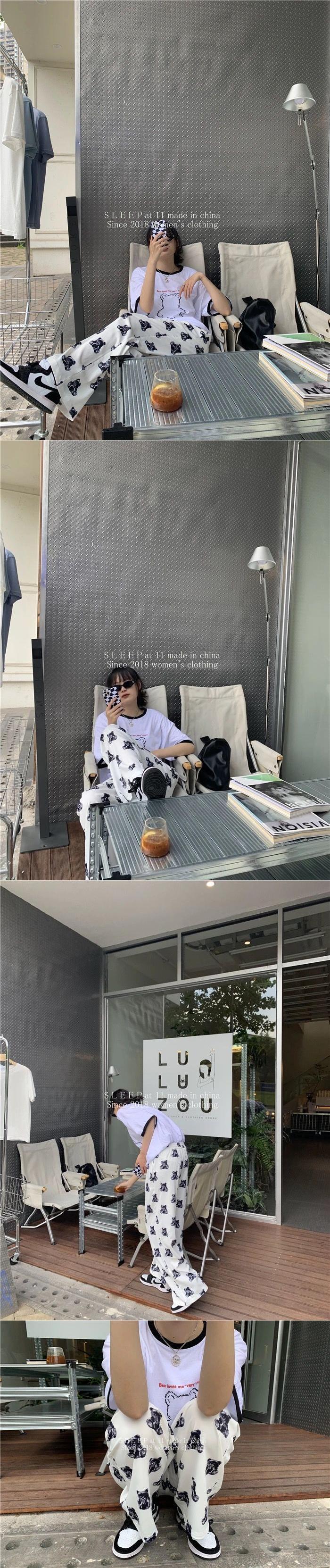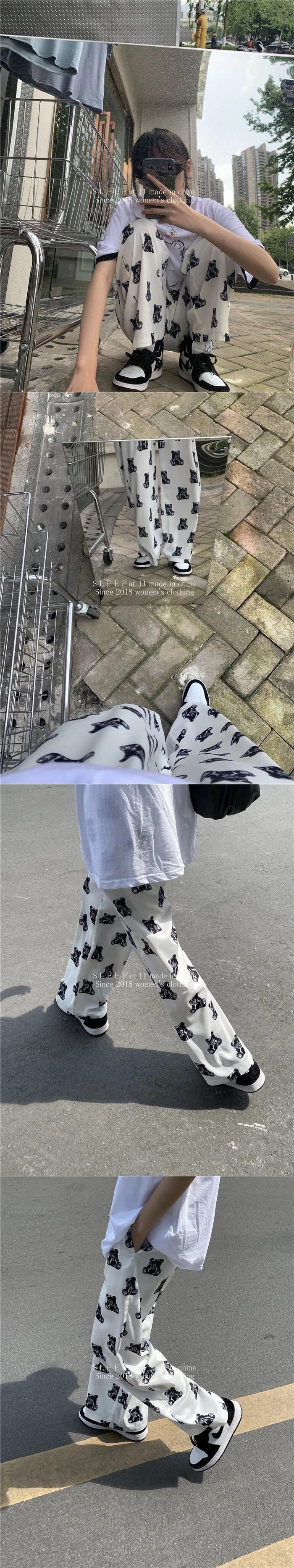 女性パンツ夏クマプリントワイドレッグパンツ白ズボンだぶだぶストレートカーゴパンツ女性ゴスパンクボトムス ホワイト サマー 夏物 ワイドパンツ got61753630937