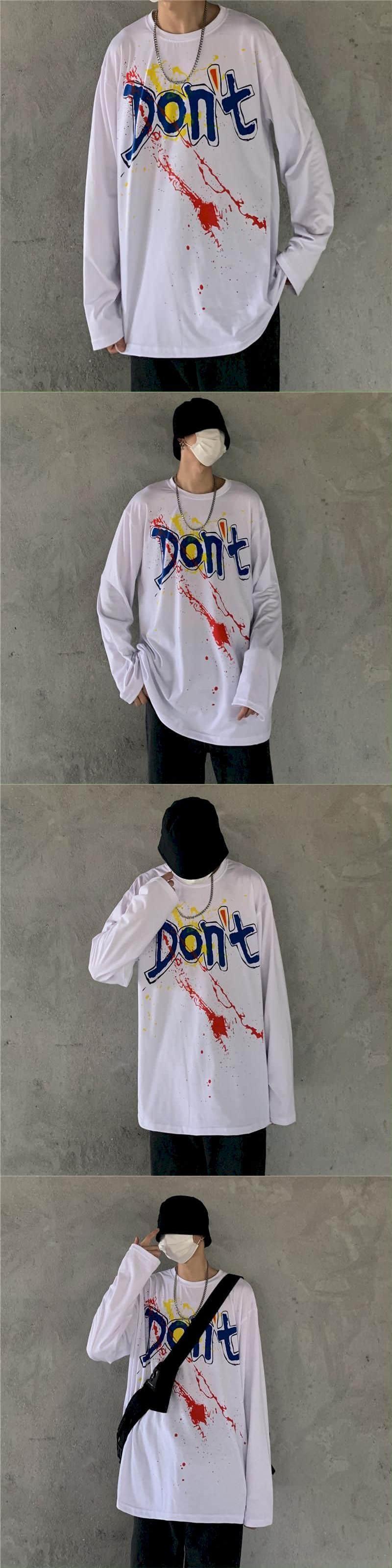 メンズ 長袖 Tシャツ オーバーサイズ 秋新作 文字プリント トレンドシャツ 学生 ゆったり カジュアル ボトムスシャツ ロング オータム 秋物 got26085020492