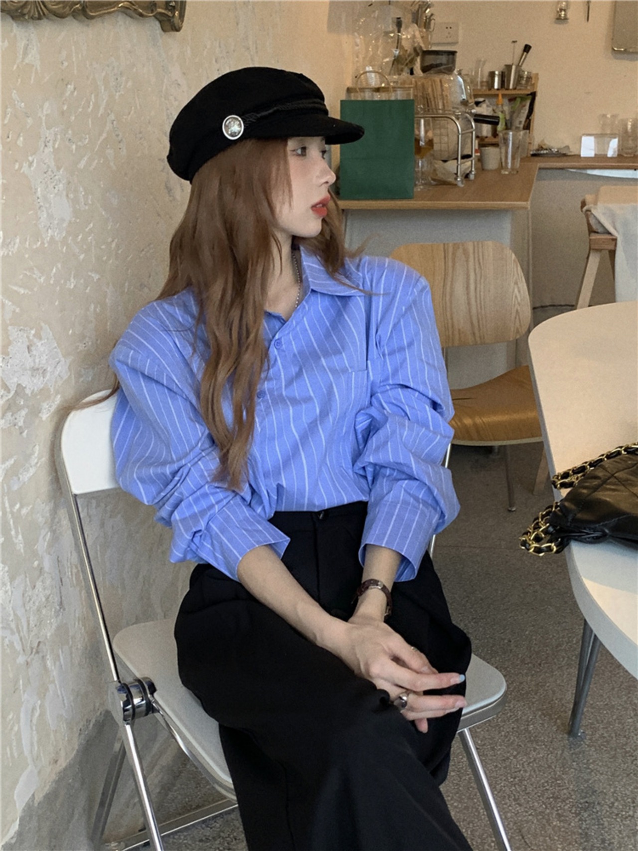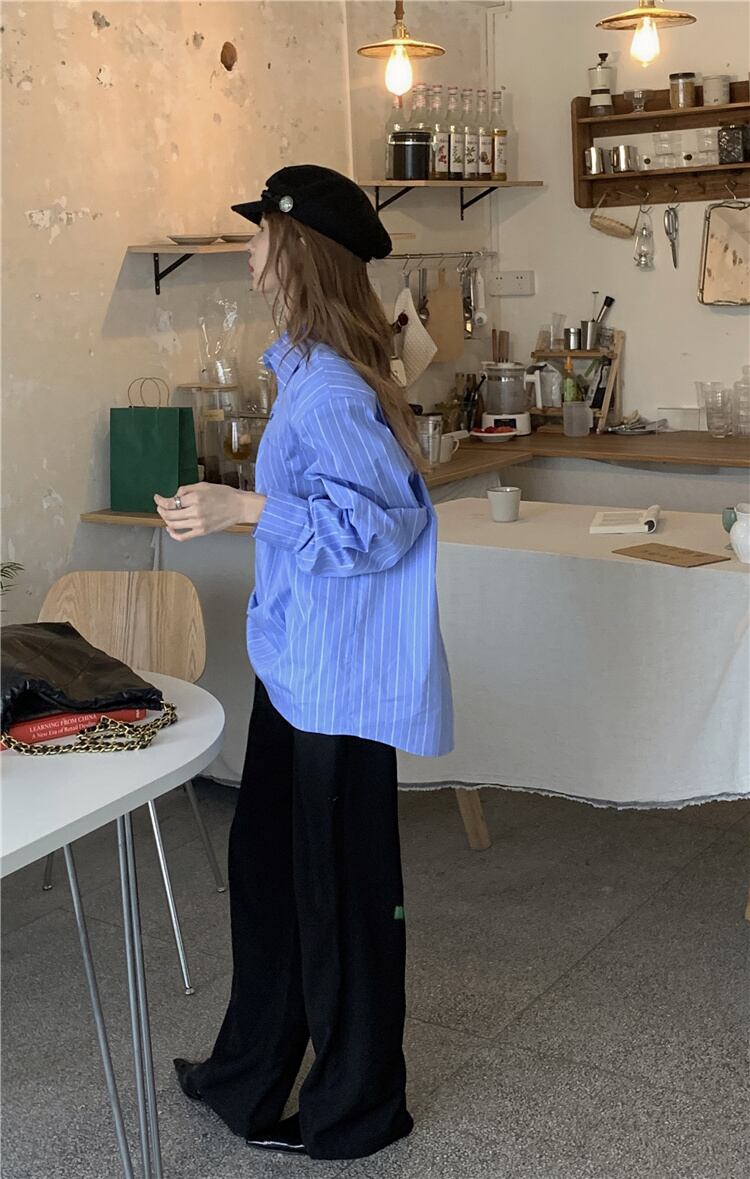 シャツ グリーン ボタン ストライプ ロング スリーブ レディース トップス ルーズ シャツ ブラウス レディース 秋/冬 コットントップ 長袖 オータム 秋物 ウィンター 冬物 got87525689317