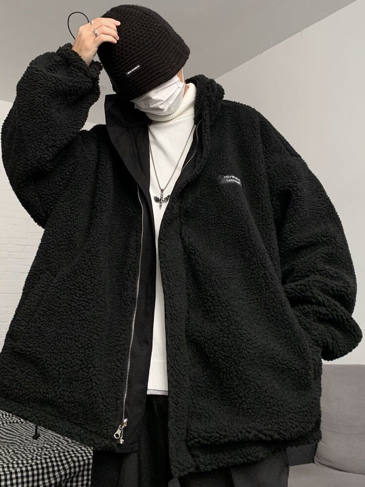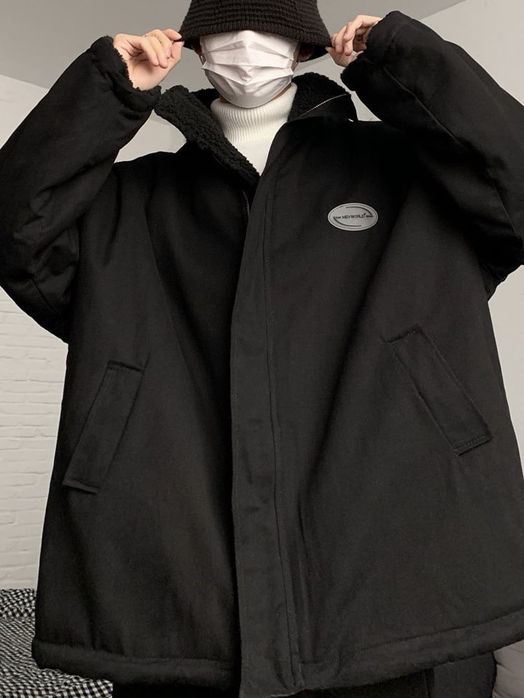 Gothiscyn ストリートラムベルベット白黒両面ジャケット冬の男性厚いパッド入りコートヒップホップの上着 ホワイト ブラック ウィンター 冬物 got28253615241