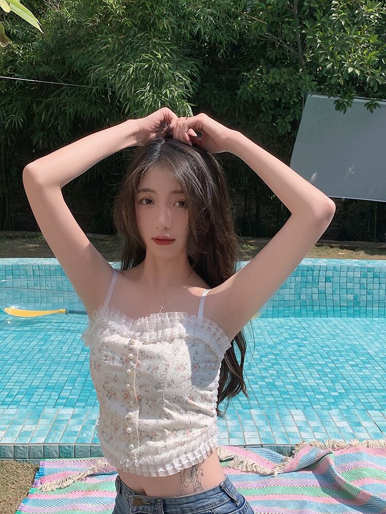 レースタンクベスト夏セクシーなスキニークロップトップキャミソールサスペンダー上着底入れトップスかわいい女性 大人ガーリー スウィート キュート カジュアル サマー 夏物 got34122556059
