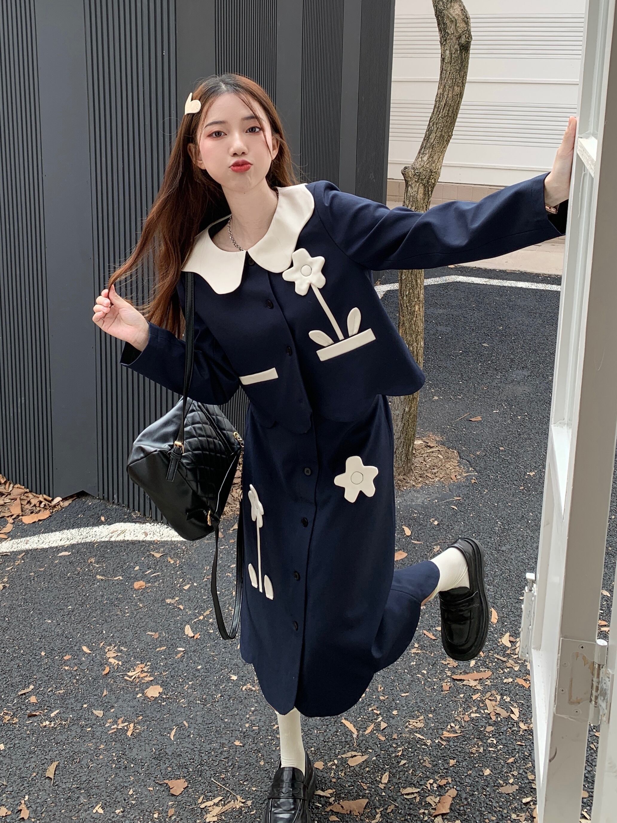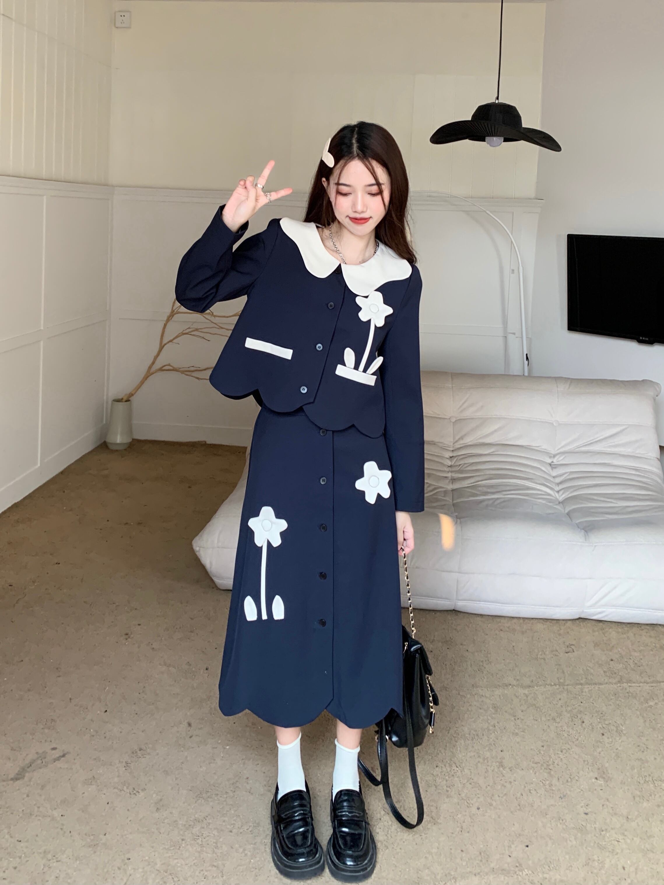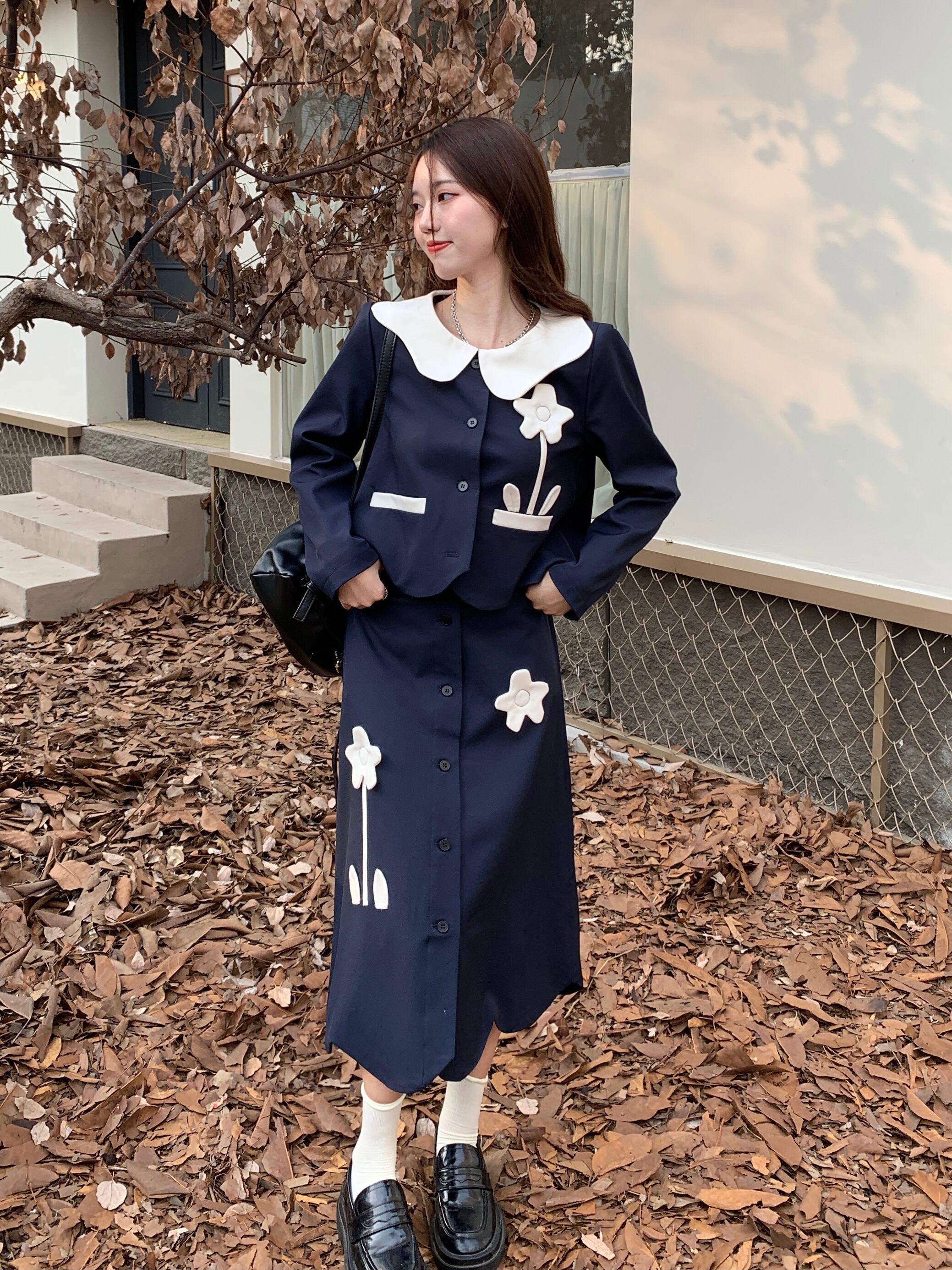 センススーツ レディース 秋 ピーターパンカラー 長袖シャツ ウエストスカート 2点セット 洋服 ロング オータム 秋物 got67098150931