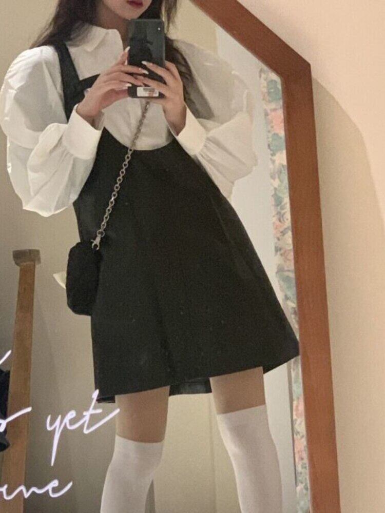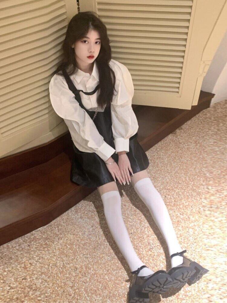 女性スーツ黒タンクドレスレザー + シャツ長袖 2 個夏服シックな女性のスーツ ロング ブラック サマー 夏物 got10350506535