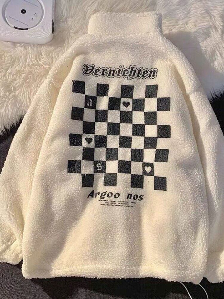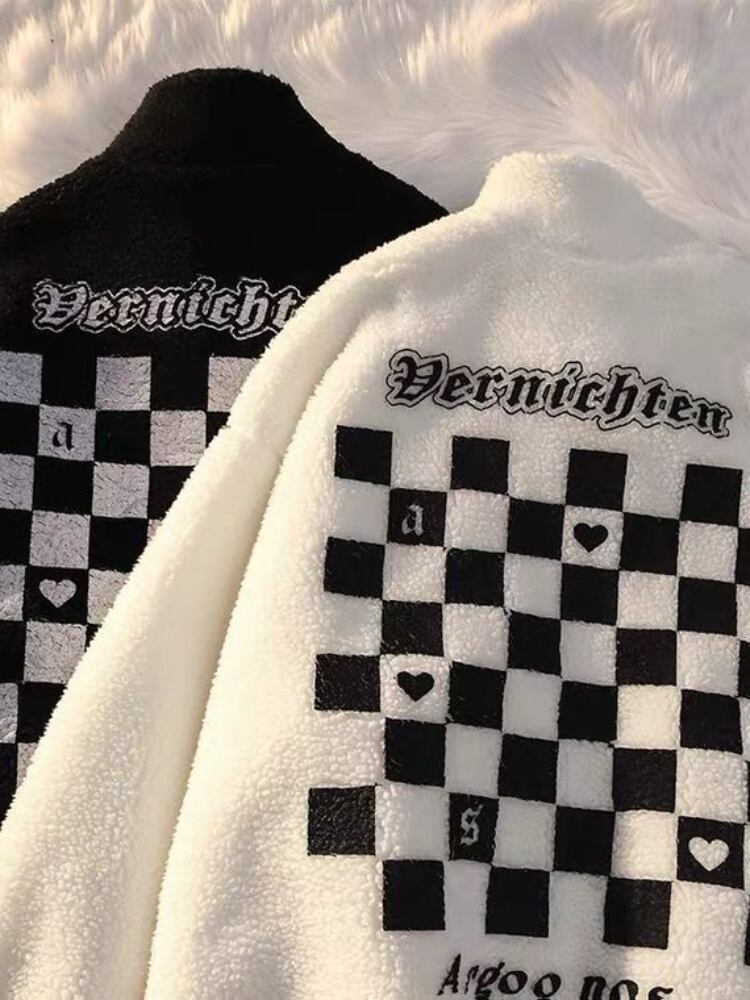 ラムウールジャケットチェック柄ジップアップジャケットステッチカップル服秋アウターコートストリート爆撃機 オータム 秋物 got17713772805