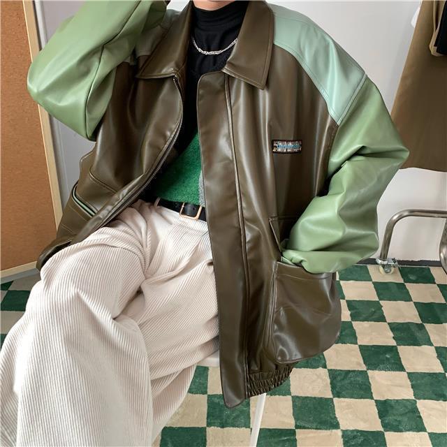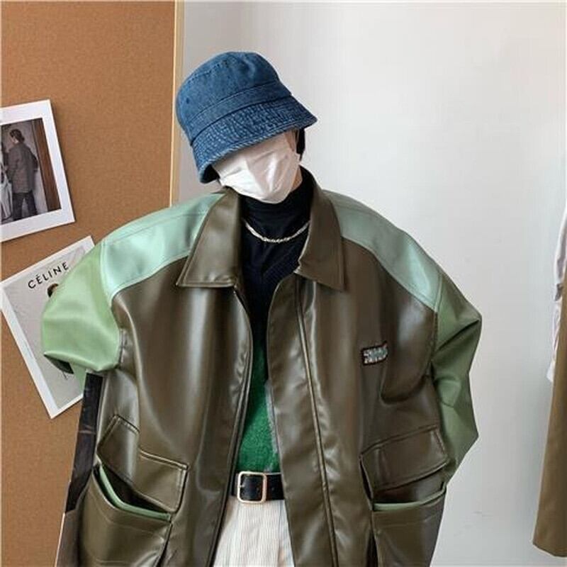 ストリート Pu レザージャケット男性女性服オートバイウインドブレーカーボンバージャケットコートステッチ男性コート got24015974126